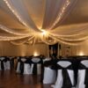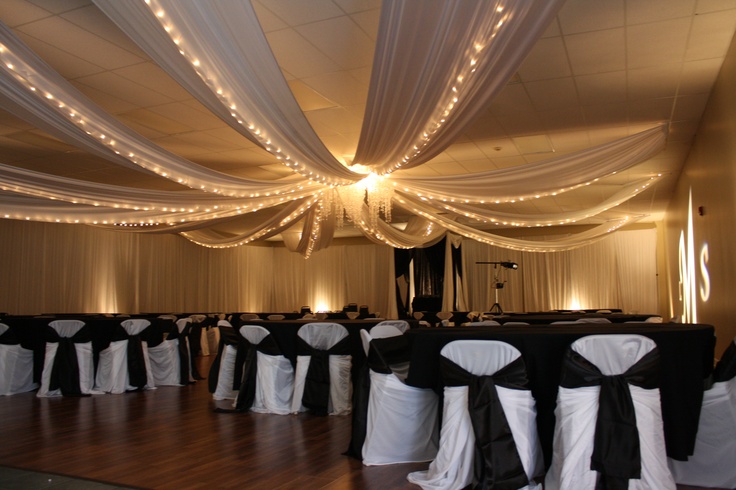 Draping your ceiling with fabric can add a bit of romance and drama to your event. Ceiling Drape panels are 5ft wide white sheer voile. Installed on a drop ceiling only. See sizing below.